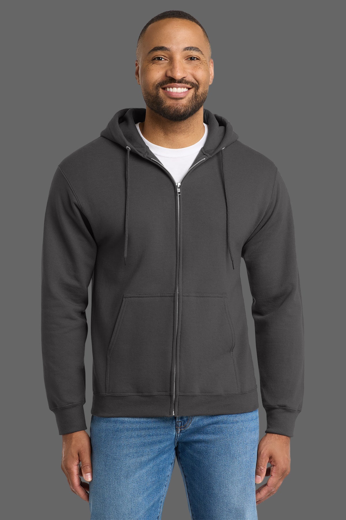 The air jet yarn provides a soft feel and reduced pilling, while the removable tag ensures irritation-free comfort and easy relabeling. A YKK metal zipper adds durability, making this hoodie a reliable go-to layer for everyday wear.